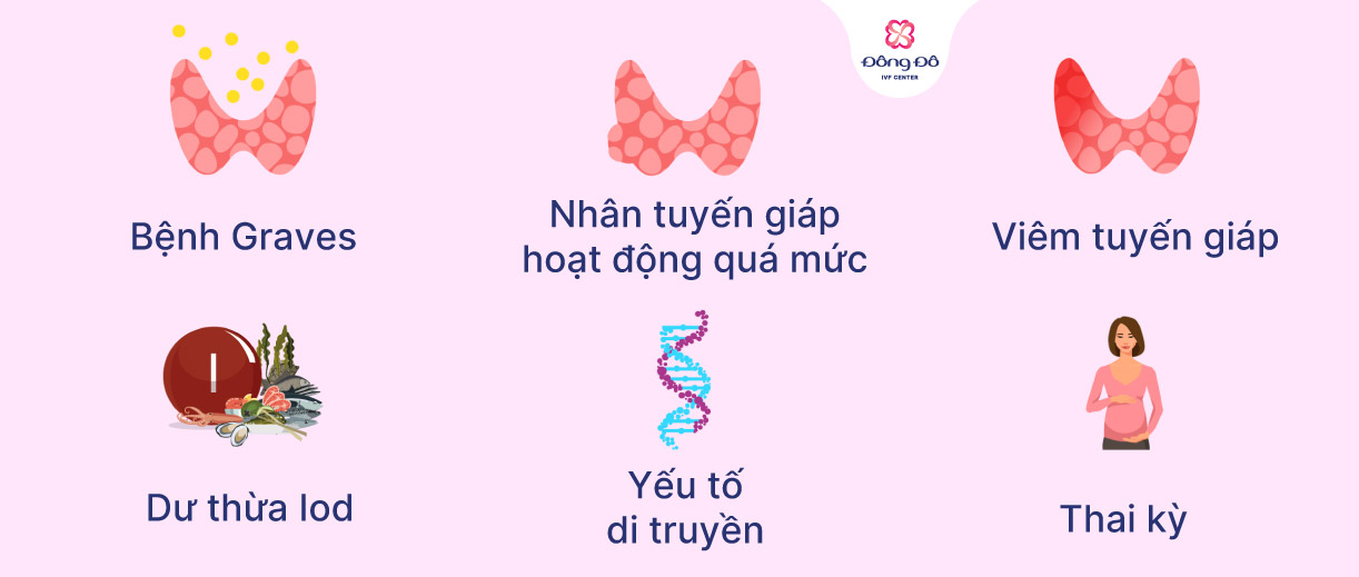 - Bệnh Basedow (Graves’ disease): Là nguyên nhân hàng đầu, do hệ miễn dịch kích thích tuyến giáp hoạt động quá mức.