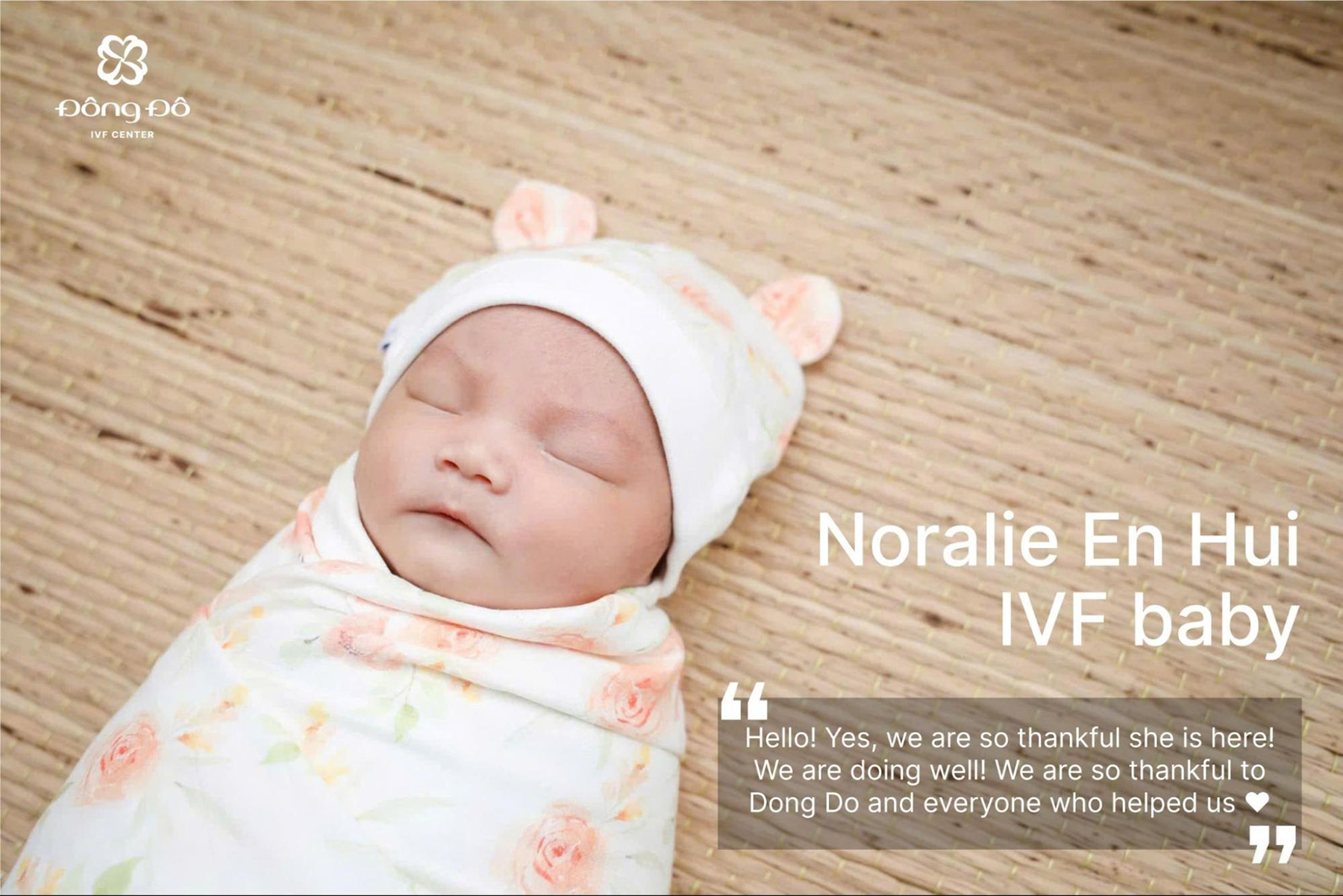 “Chúng tôi vô cùng biết ơn vì bé đã đến với gia đình! Thật sự cảm kích với Đông Đô IVF Center và tất cả những người đã giúp đỡ chúng tôi”, Jessica chia sẻ trên trang cá nhân, bày tỏ niềm hạnh phúc trong ngày đón bé Noralie chào đời.